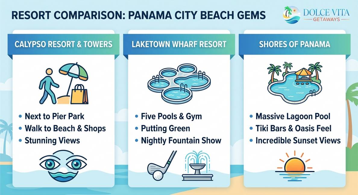 This is where Panama City Beach truly shines. In Pensacola, you will mostly find standard hotels or historic inns downtown. In PCB, we offer a resort lifestyle.