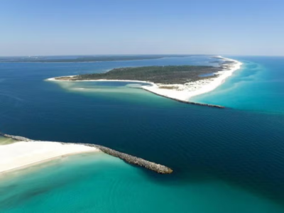 A short boat trip to untouched white-sand beaches. (15–18 min drive + short boat ride)