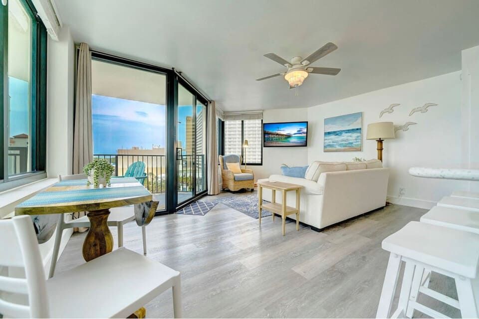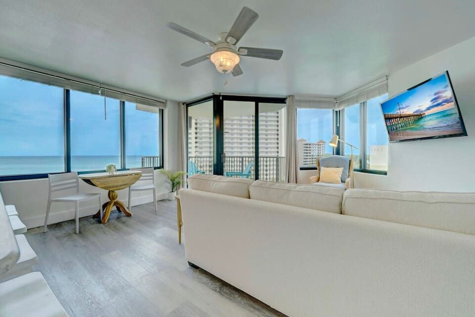 Sunbird Beach Resort puts you steps from white sand, ocean breezes, and direct Gulf views. Located at 9850 S Thomas Dr beside Pineapple Willy’s, it’s one of PCB’s most walkable beachfront stays. Most rentals are efficient 1-bedroom Gulf-front condos with full kitchens, Wi-Fi, and private balconies (features vary by unit). Dolce Vita Getaways offers easy virtual check-in, secure codes, and contactless entry. Enjoy oceanfront pools and quick walks to Pier Park, Gulf World, Shipwreck Island, WonderWorks, Ripley’s, and St. Andrews State Park.