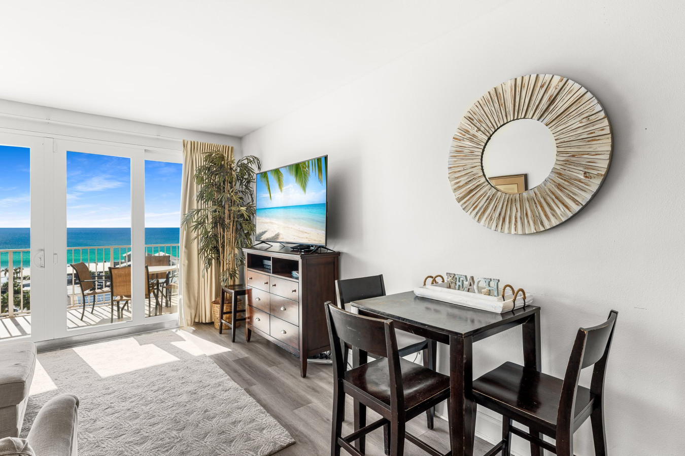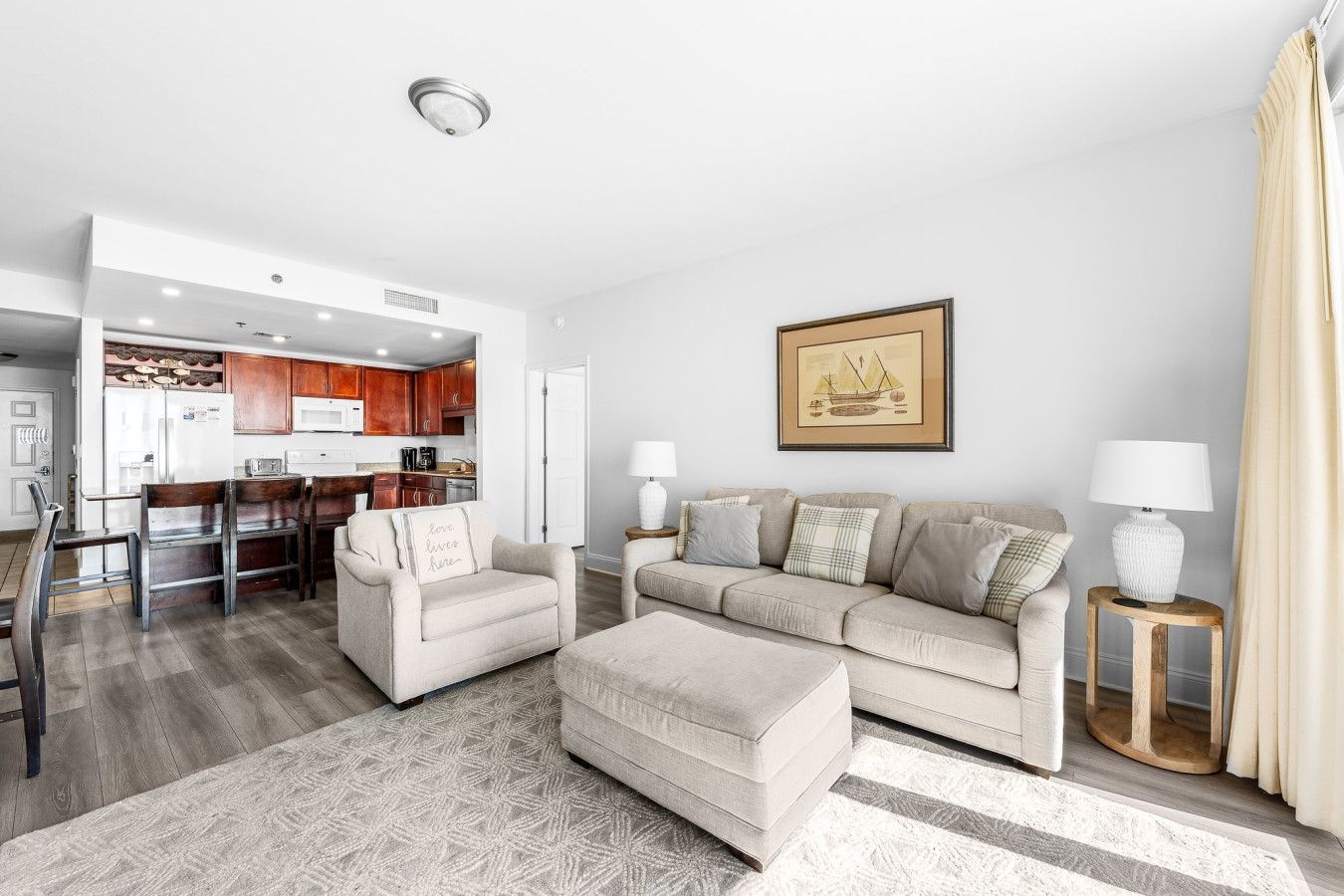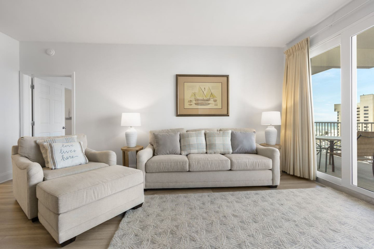 This updated 2-bedroom plus bunks condo comfortably sleeps 8 with 2 king beds, a bunk area, and a queen sleeper sofa. The kitchen features new appliances and all cooking essentials. Located directly across from the beach, this condo is the perfect home-away-from-home for a relaxing getaway with family or friends.