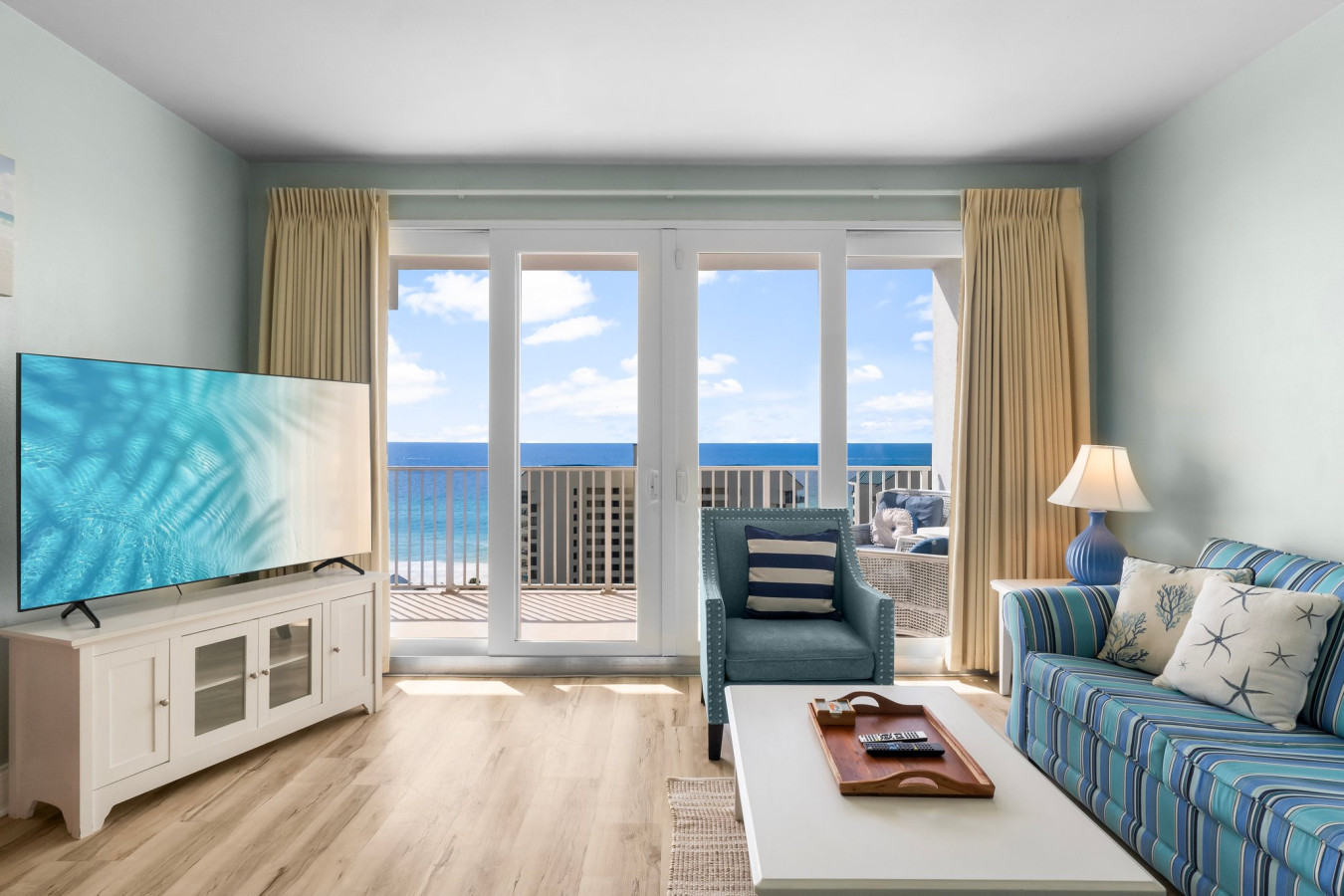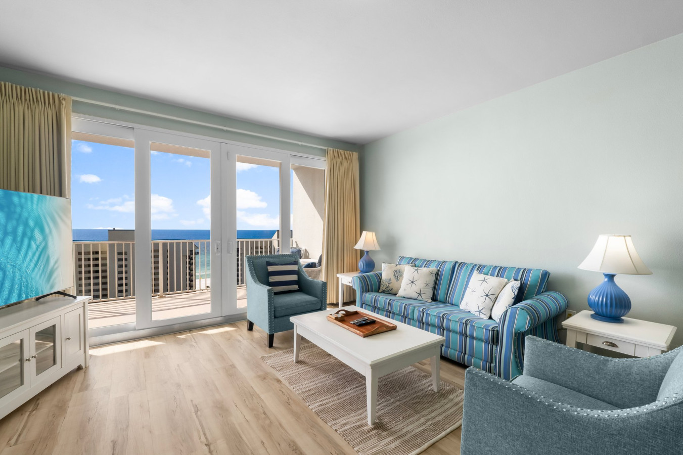 → Oversized Balcony: A large, private balcony offering breathtaking ocean and beach views.