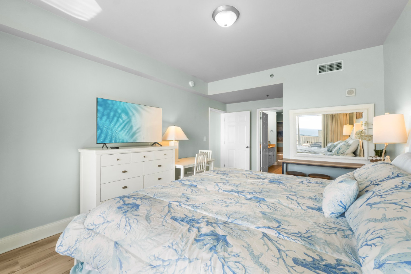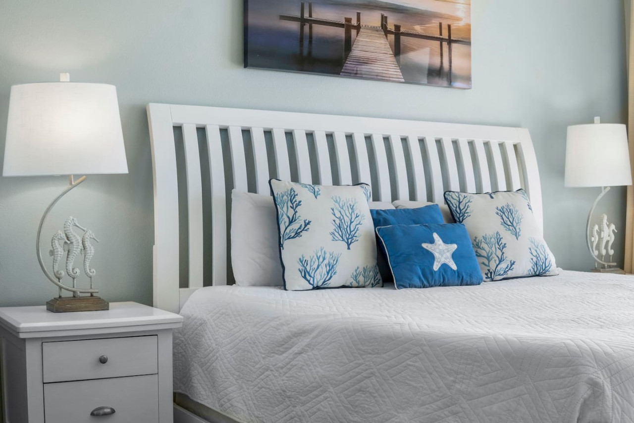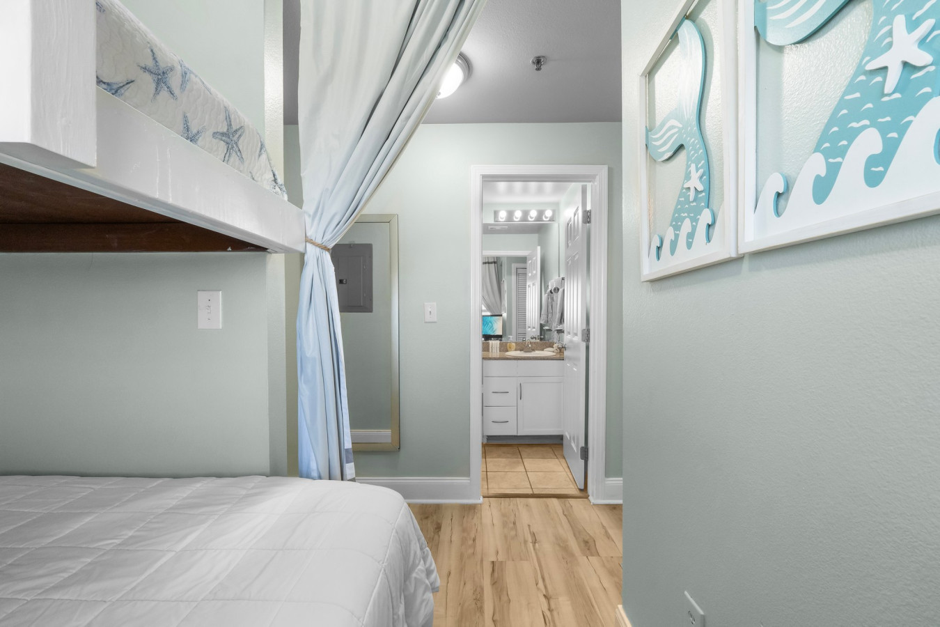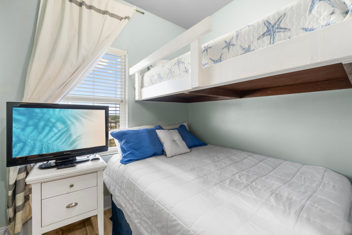 Welcome to our stunning resort condo! This spacious condo sleeps 9 and is thoughtfully designed to accommodate guests with ease and comfort. It features two bedrooms: a master bedroom with a king-size bed and a second bedroom with double full-size beds. Additionally, there’s a cozy bunk area with bunk beds, perfect for extra sleeping space, and a sleeper sofa that conveniently transforms into a queen-size bed.
