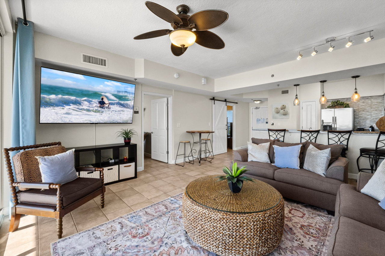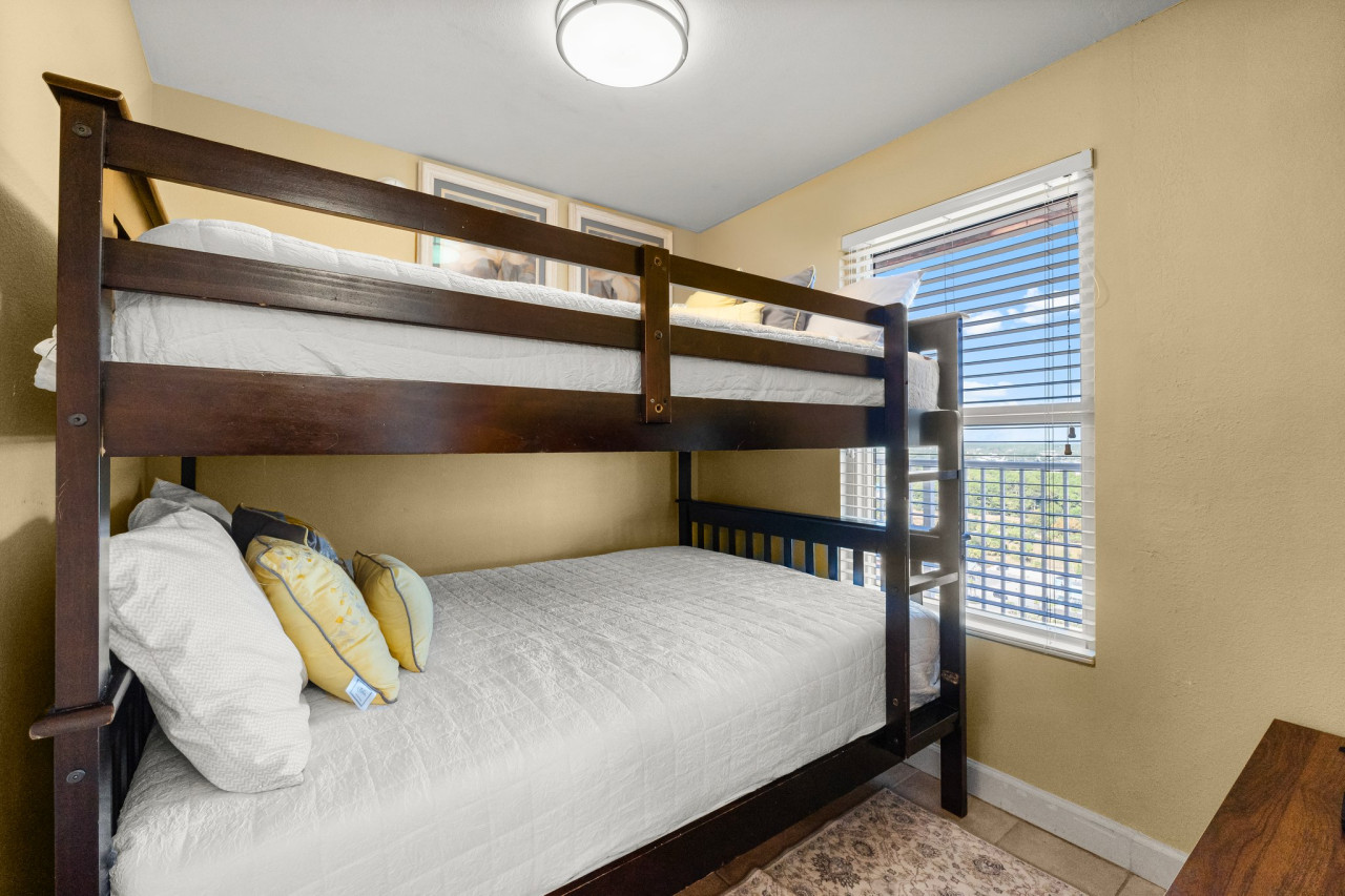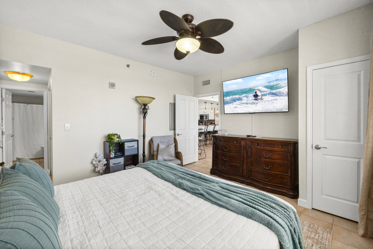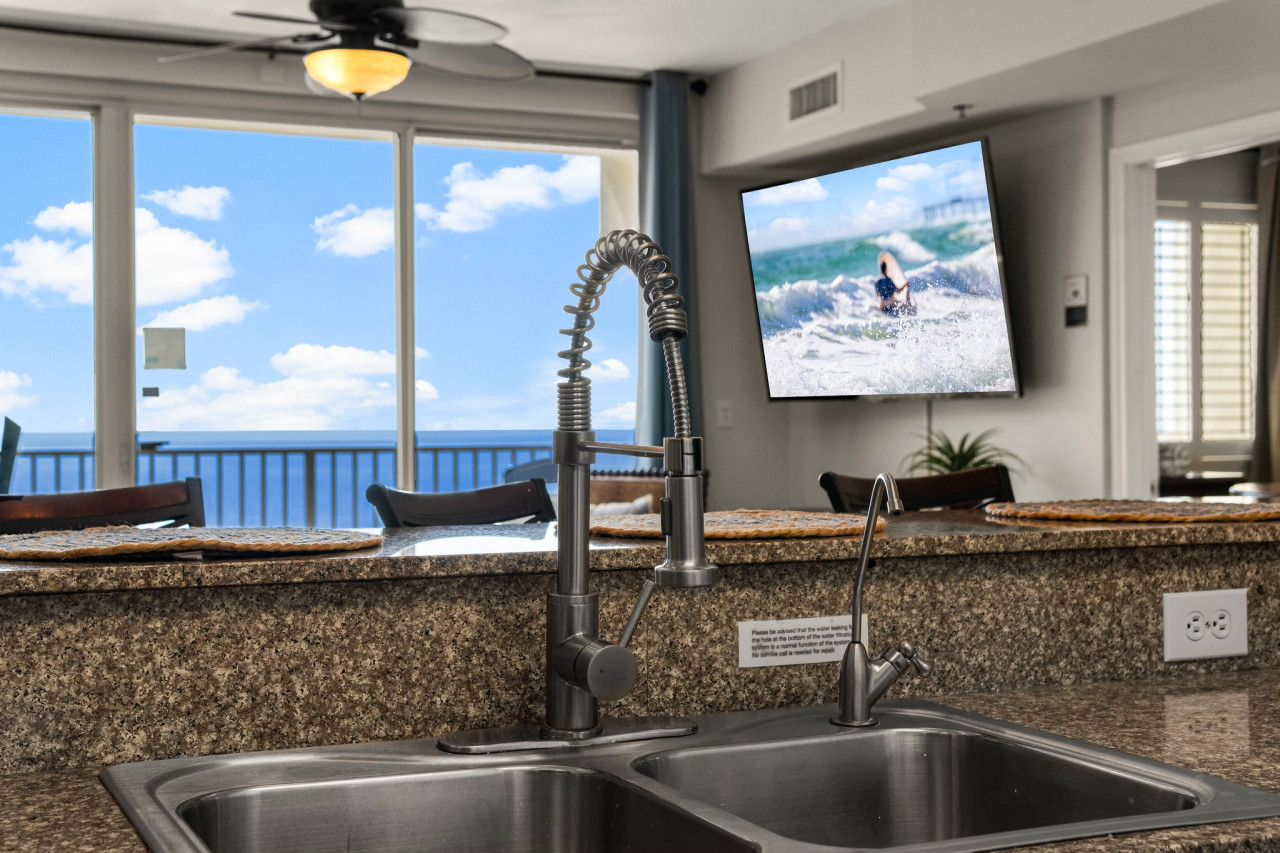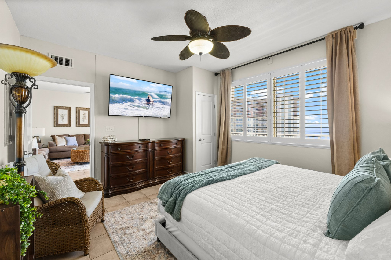 Welcome to your perfect getaway! This beautifully furnished condo offers everything you need for a relaxing vacation. Unwind in the generous living space, complete with a large flatscreen TV and a comfy sofa, perfect for movie nights. The master bedroom features a king-sized bed, while the second bedroom has built-in bunks, accommodating up to six guests comfortably. Don’t forget to step out onto the balcony and take in the breathtaking views!