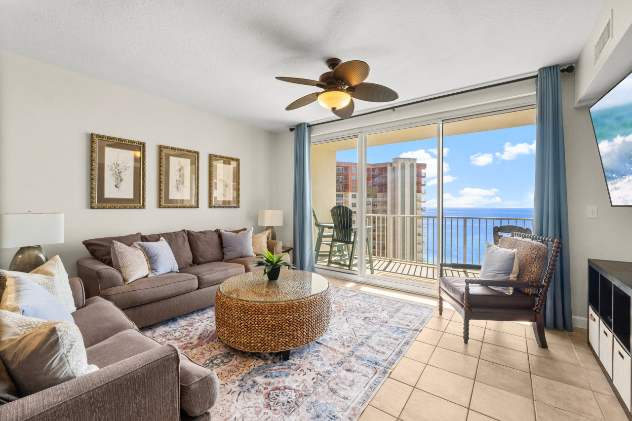 → Stunning 19th-floor location offering panoramic beachfront views from the balcony, living room, and master bedroom.
