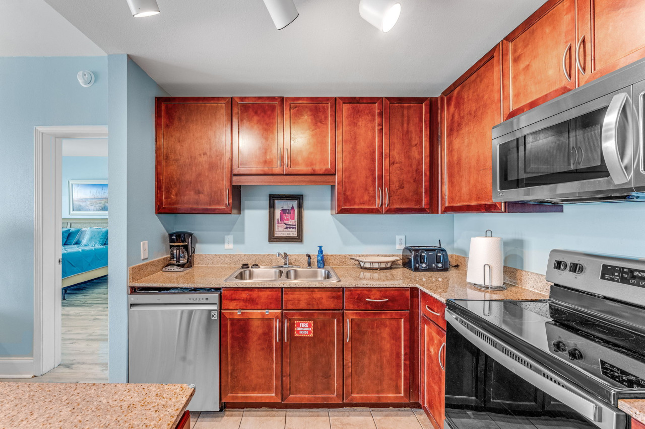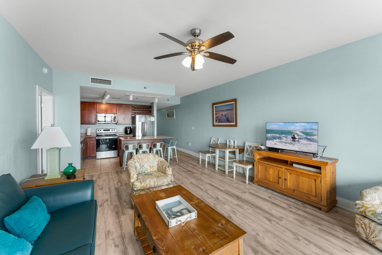 Welcome to your perfect beach getaway! This beautifully remodeled condo is ideal for family and friends, providing a spacious and inviting retreat for up to 8 guests. With 2 cozy bedrooms & a bunk bed area, there's room for everyone to relax & enjoy. The condo boasts modern comforts including a fully equipped kitchen, a queen-size sleeper sofa, and a large balcony. Whether you’re here for adventure or relaxation, this fully furnished condo has everything you need for an unforgettable stay.