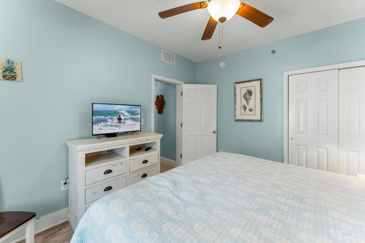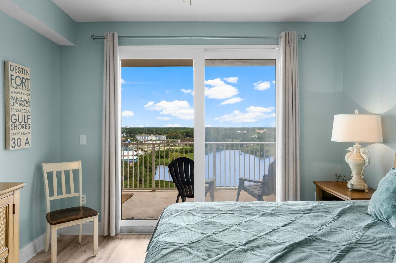→ Master Bedroom: Relax in a king bed with Lake views and private balcony access.