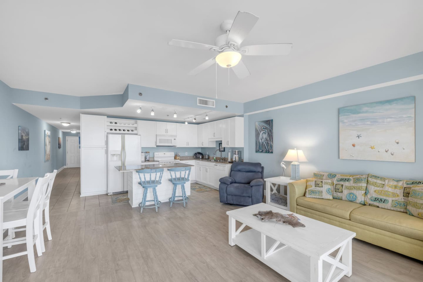 Relax and unwind at this bright coastal condo located in Laketown Wharf Resort, one of Panama City Beach’s most popular destinations. Enjoy resort-style amenities including multiple pools, lakefront boardwalks, on-site dining, and a short walk to the beach, all paired with a comfortable, open-concept interior designed for easy beach living.
