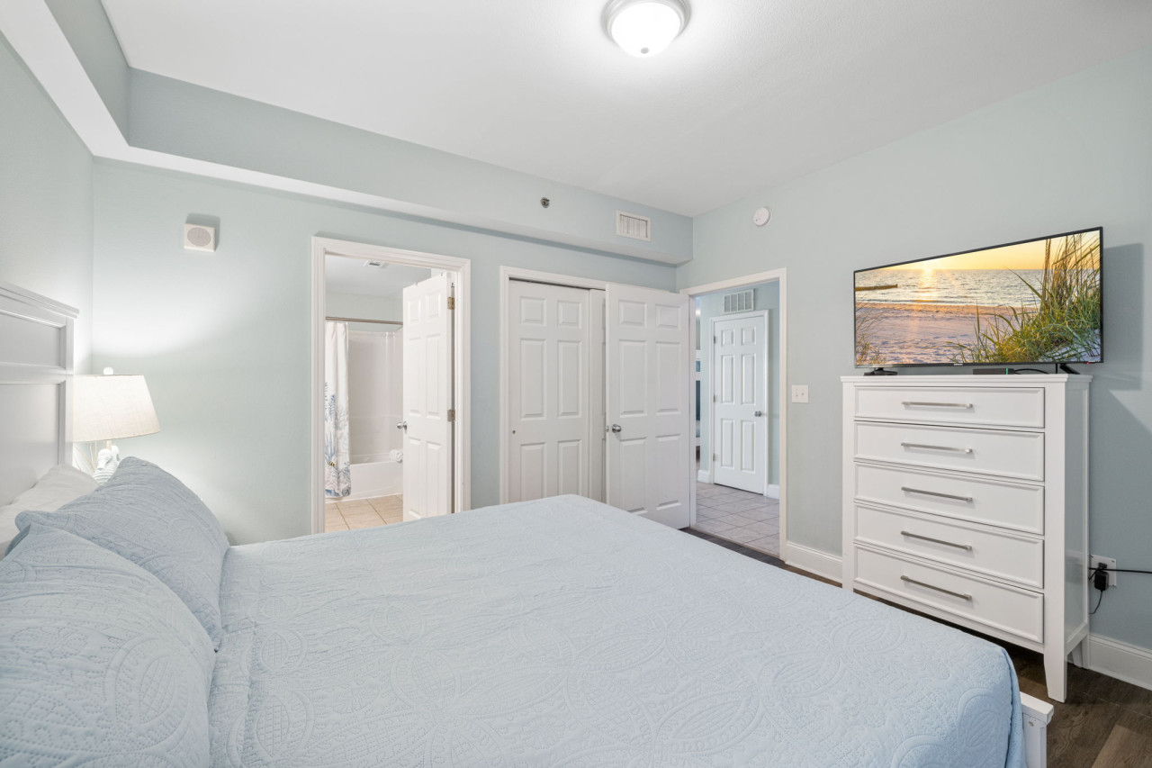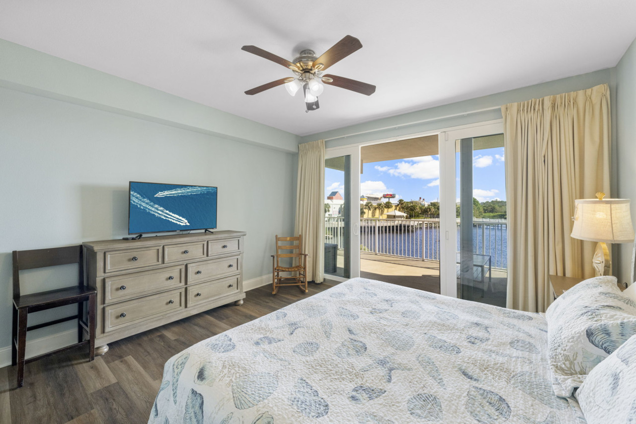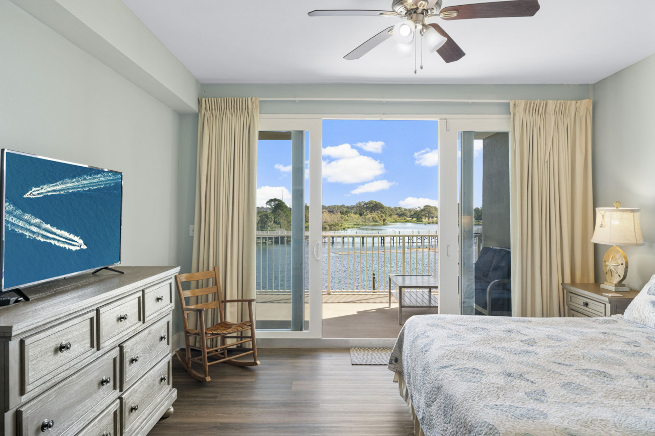 → Master Bedroom with King Bed, Lake View & Private Balcony Access!