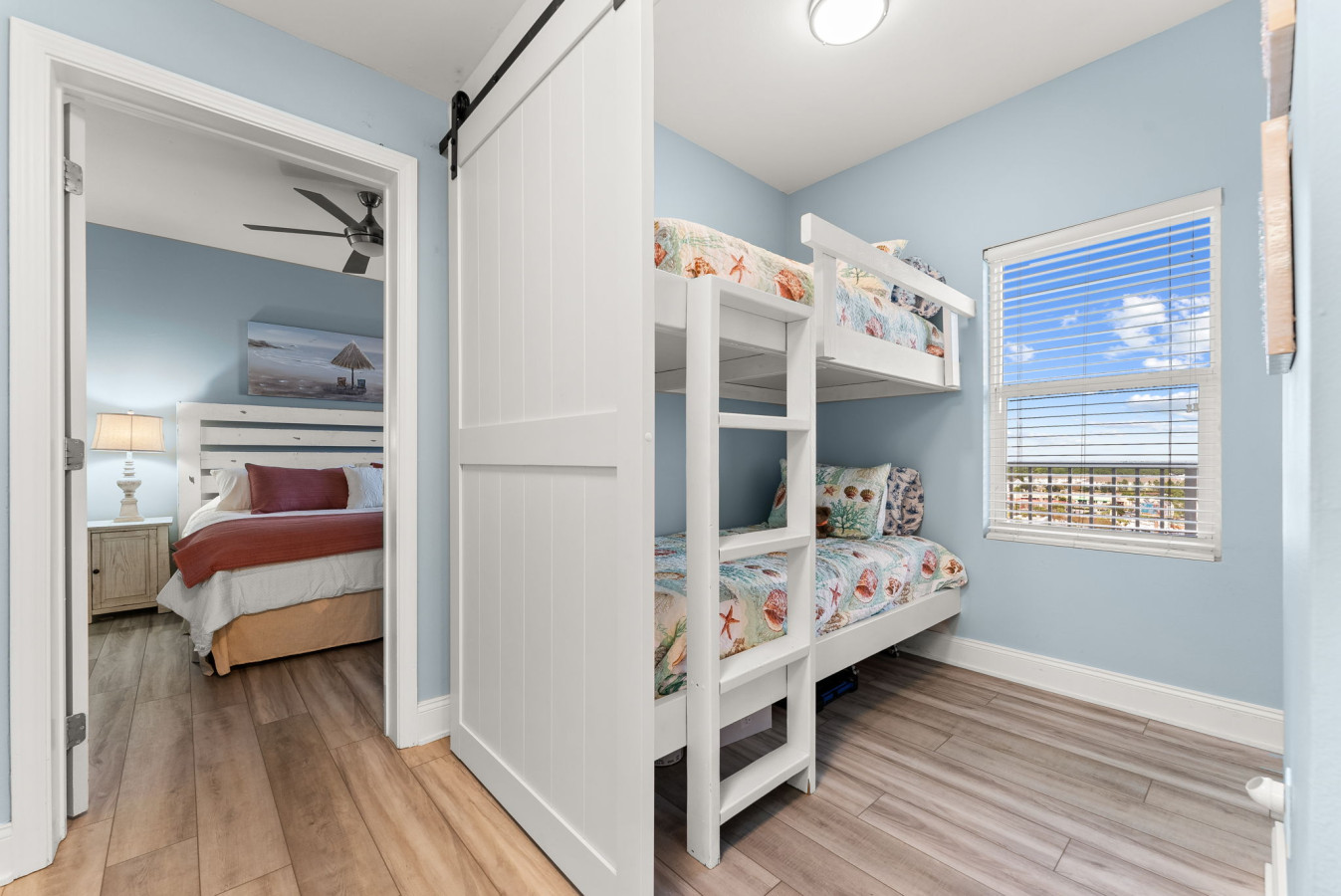 🛏️ Bunk room (enclosed 3rd bedroom) with a door for privacy — great for kids or teens