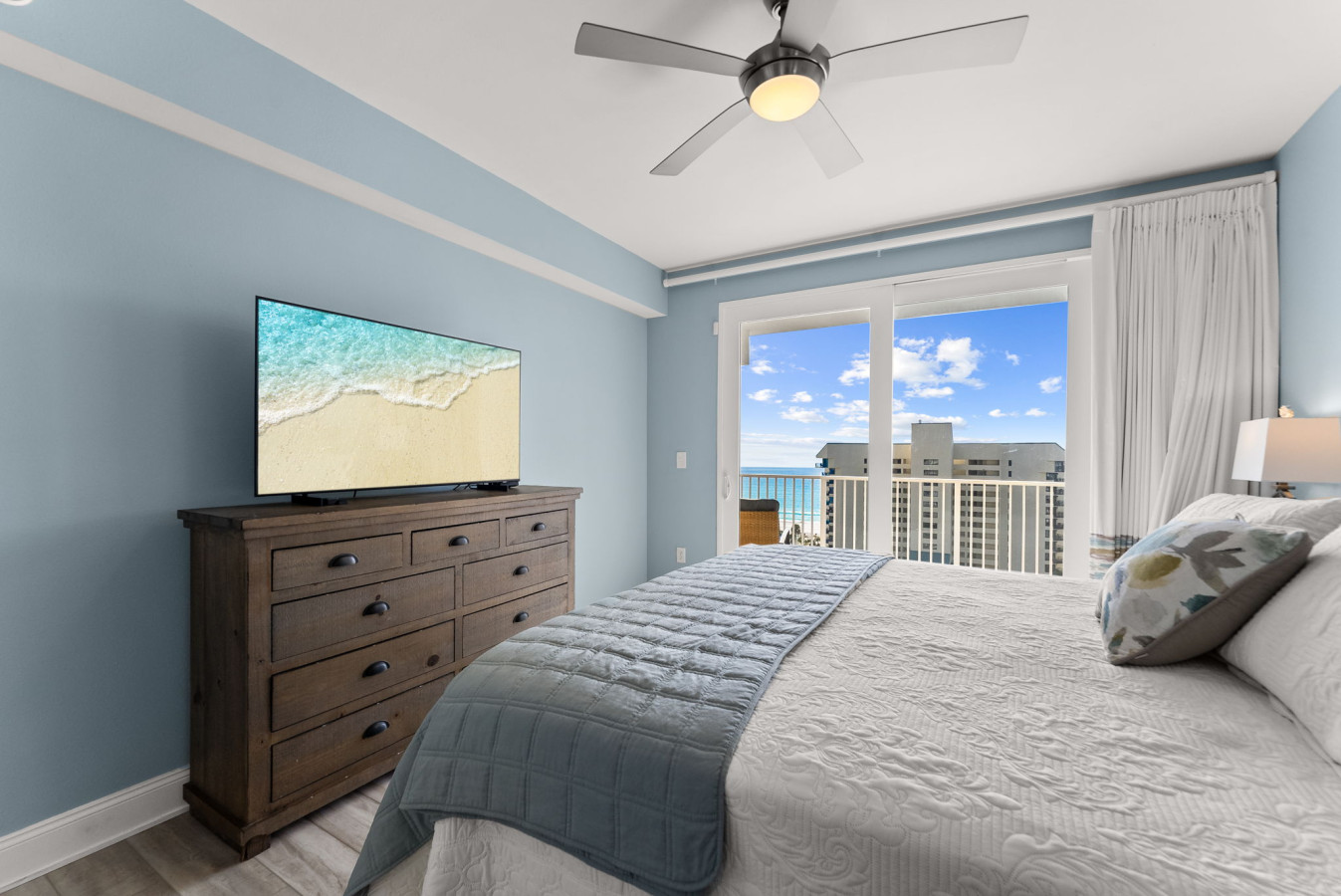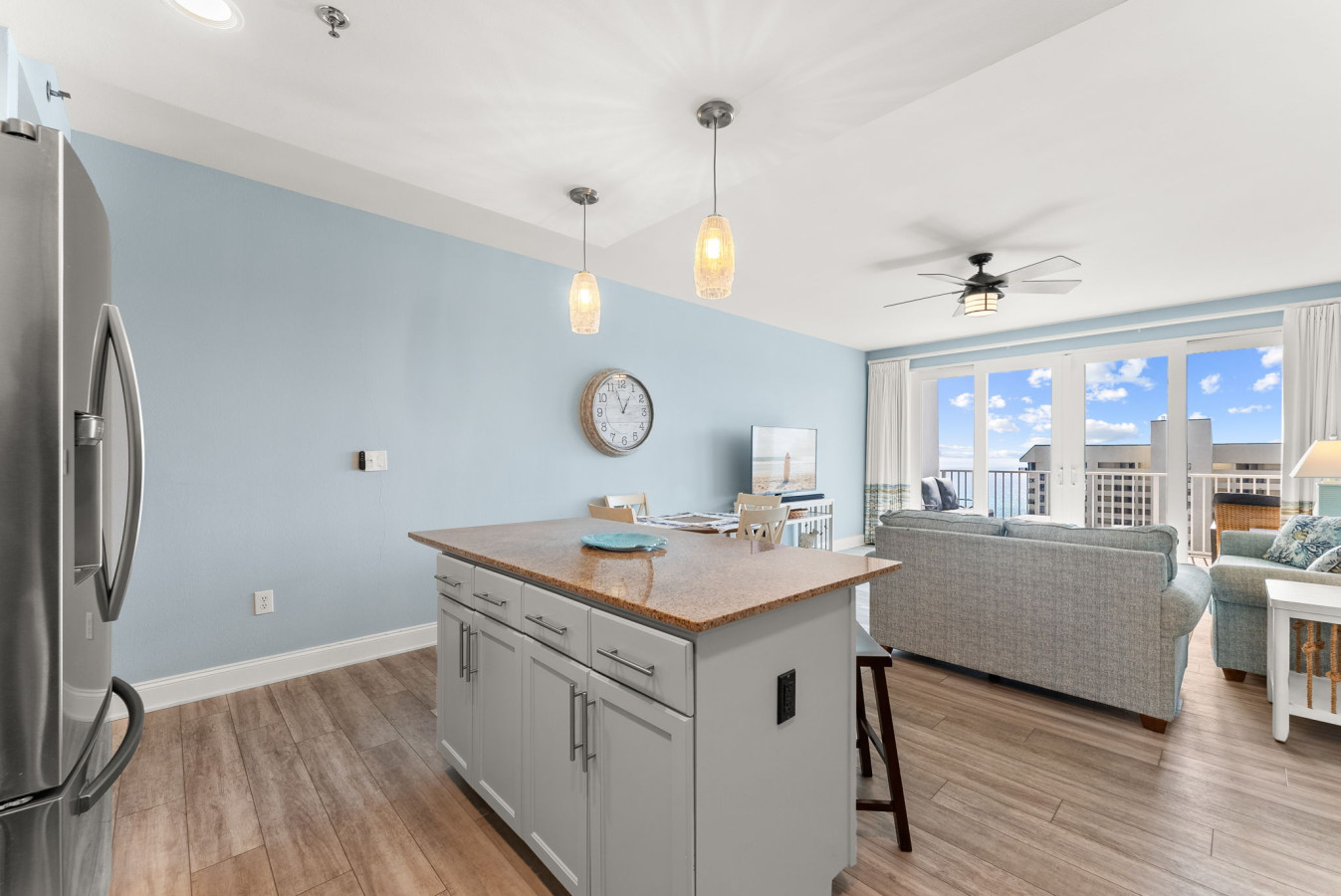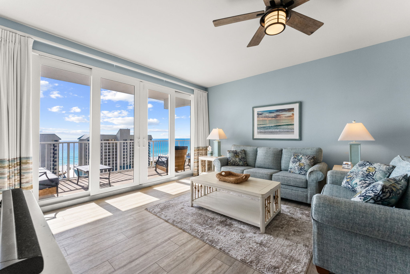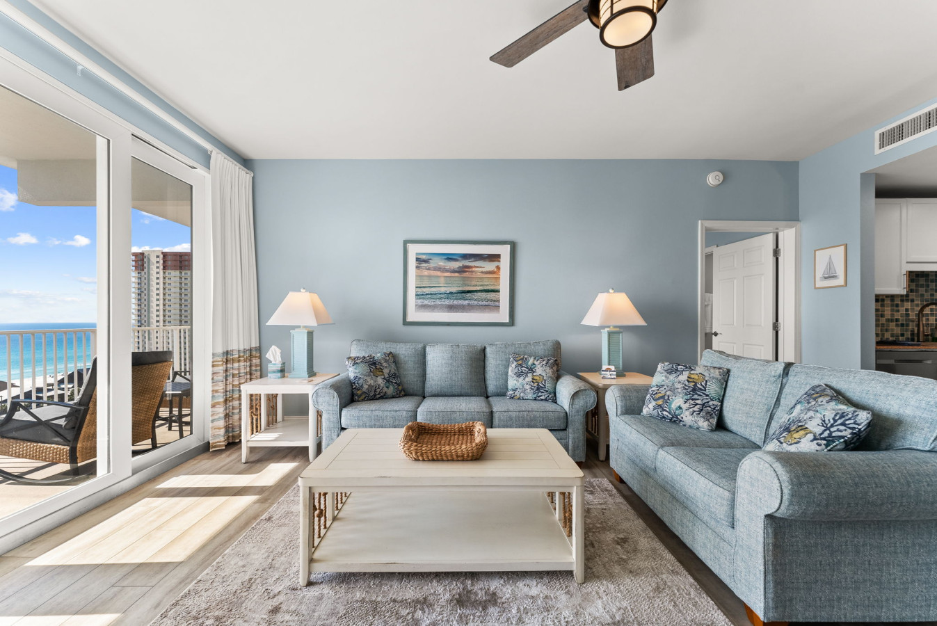 Welcome to this beautifully updated 3-bedroom, 2-bath resort condo located directly across from the sugar-white sands of Panama City Beach! This spacious retreat features an open-concept layout, modern coastal décor, and convenient access to resort-style amenities — all right outside your door.