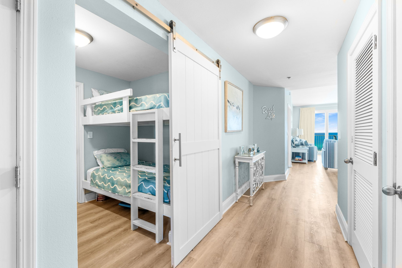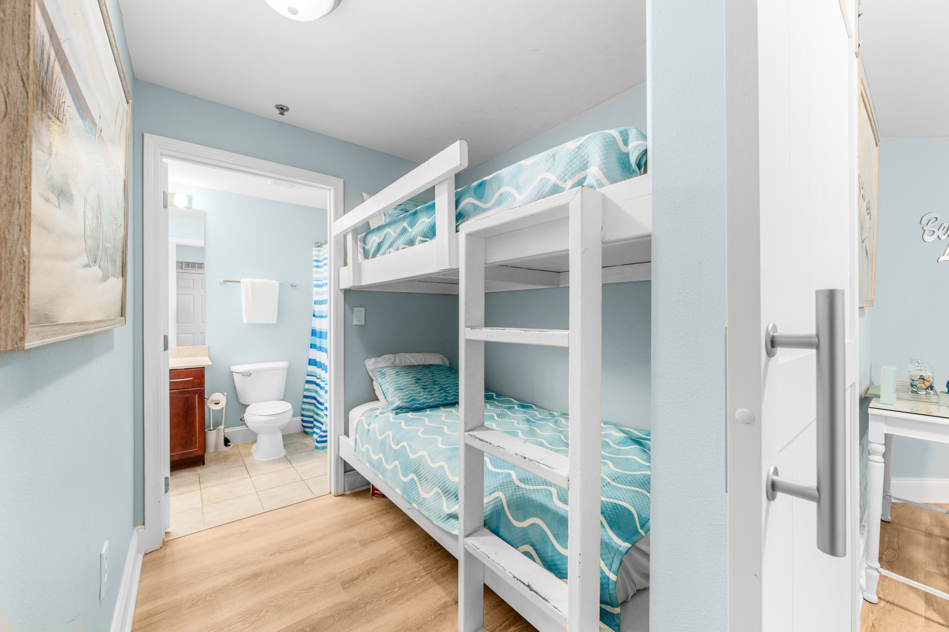 → Fourth Bedroom: Cozy bunk bed setup with a barn door for added privacy and access to a Jack & Jill bathroom (no windows in the room).