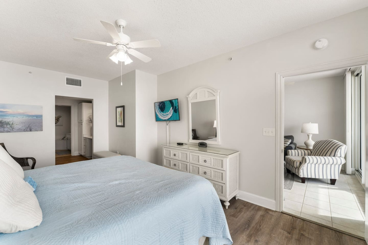 → Master Bedroom: King bed with stunning Gulf view and private balcony access.