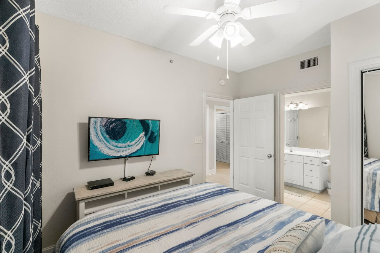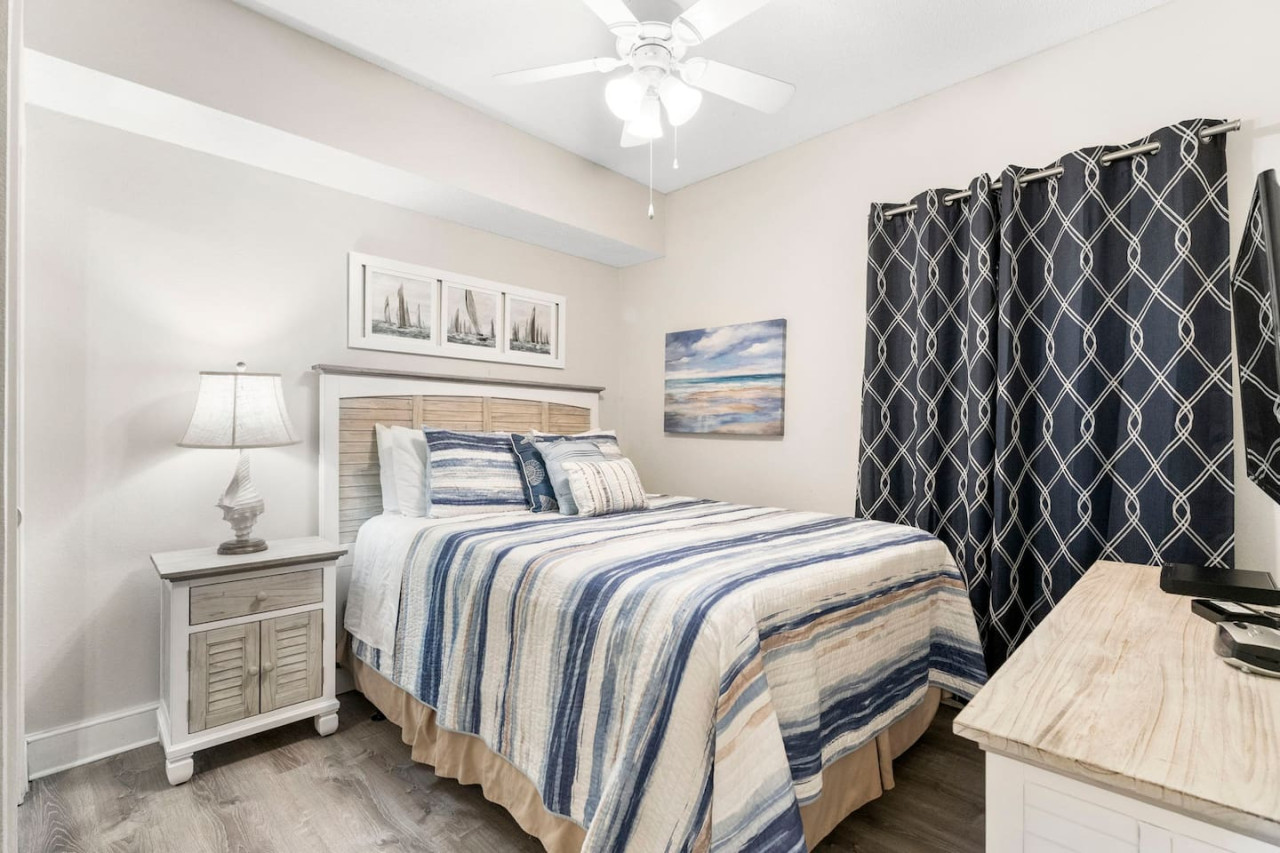 → 2nd Bedroom: Cozy queen-size bed for a restful night.