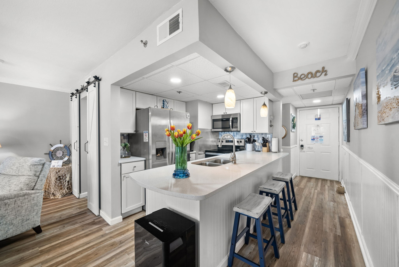 The condo also features a balcony with stunning views of the ocean where you can enjoy the amazing sunsets! Popular restaurant Pineapple Willie’s is located right next to the Resort!