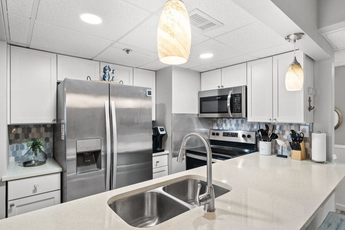 The condo also features a balcony with stunning views of the ocean where you can enjoy the amazing sunsets! Popular restaurant Pineapple Willie's is located right next to the Resort!