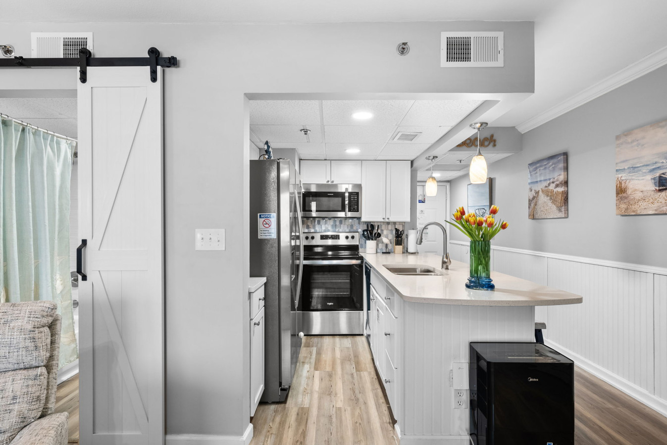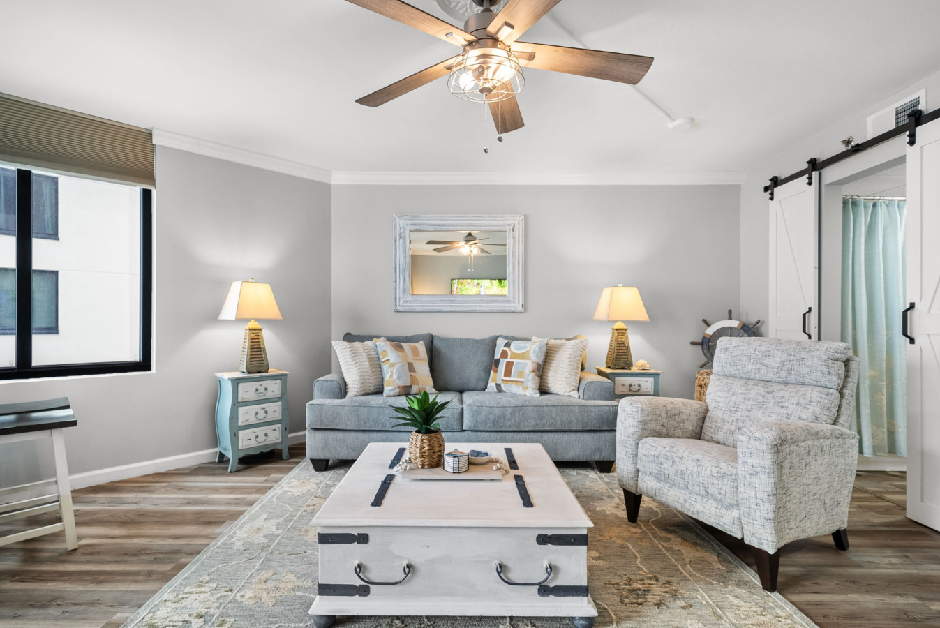 Kick back and relax in this calm and stylish condo. Ideal for solo travelers, couples, and small families. This cozy condo was just remodeled and offers guests a super-comfy stay, well appointed kitchen, queen size bedroom, SMART TV’s and a queen size sleeper sofa!