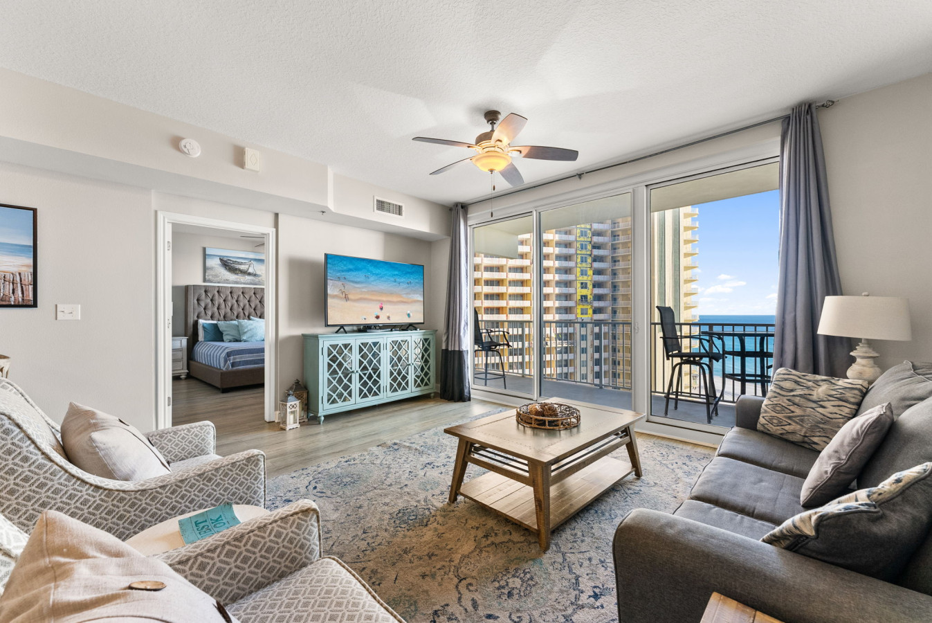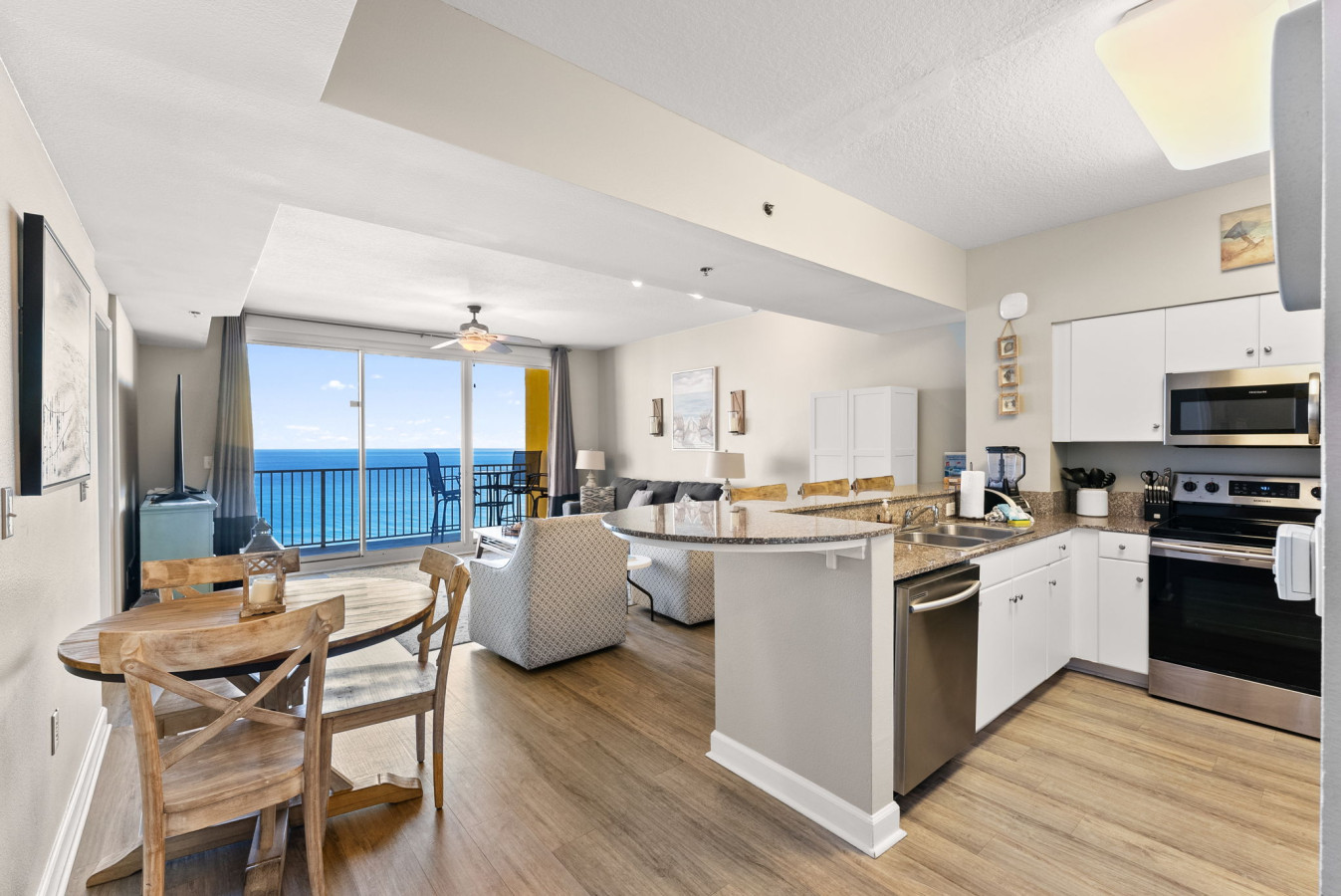 Enjoy a bright, coastal-inspired condo designed for comfort and convenience. Floor-to-ceiling balcony doors bring in natural light and showcase the emerald waters of the Gulf.