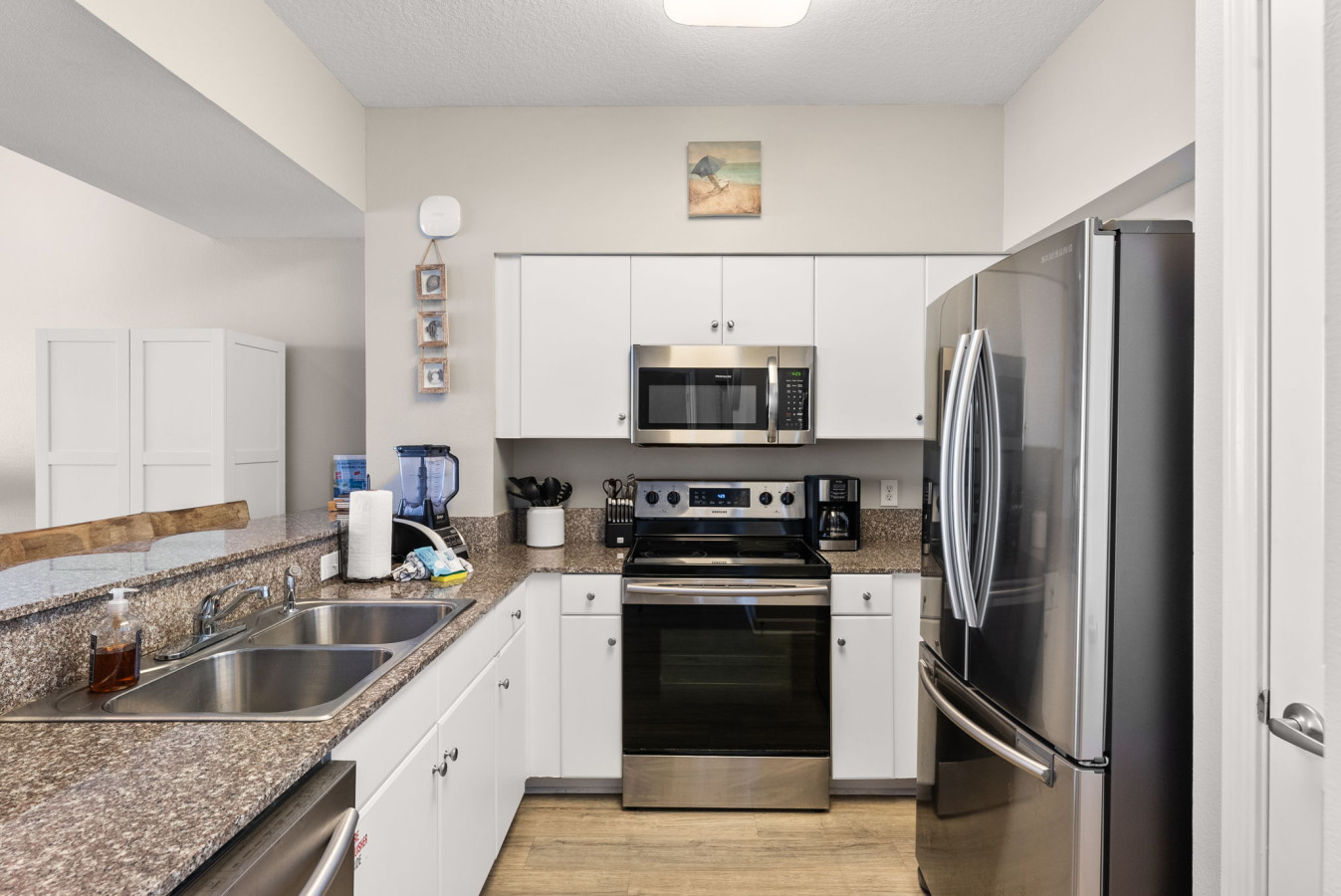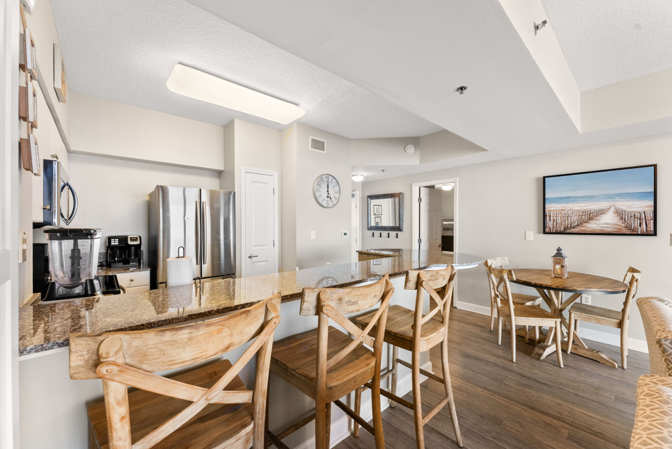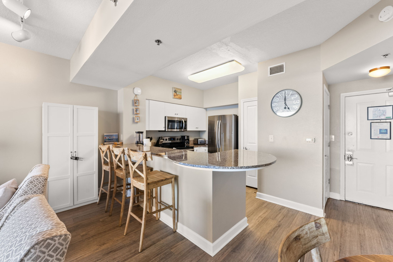 ✔️ Fully equipped kitchen with granite counters & bar seating