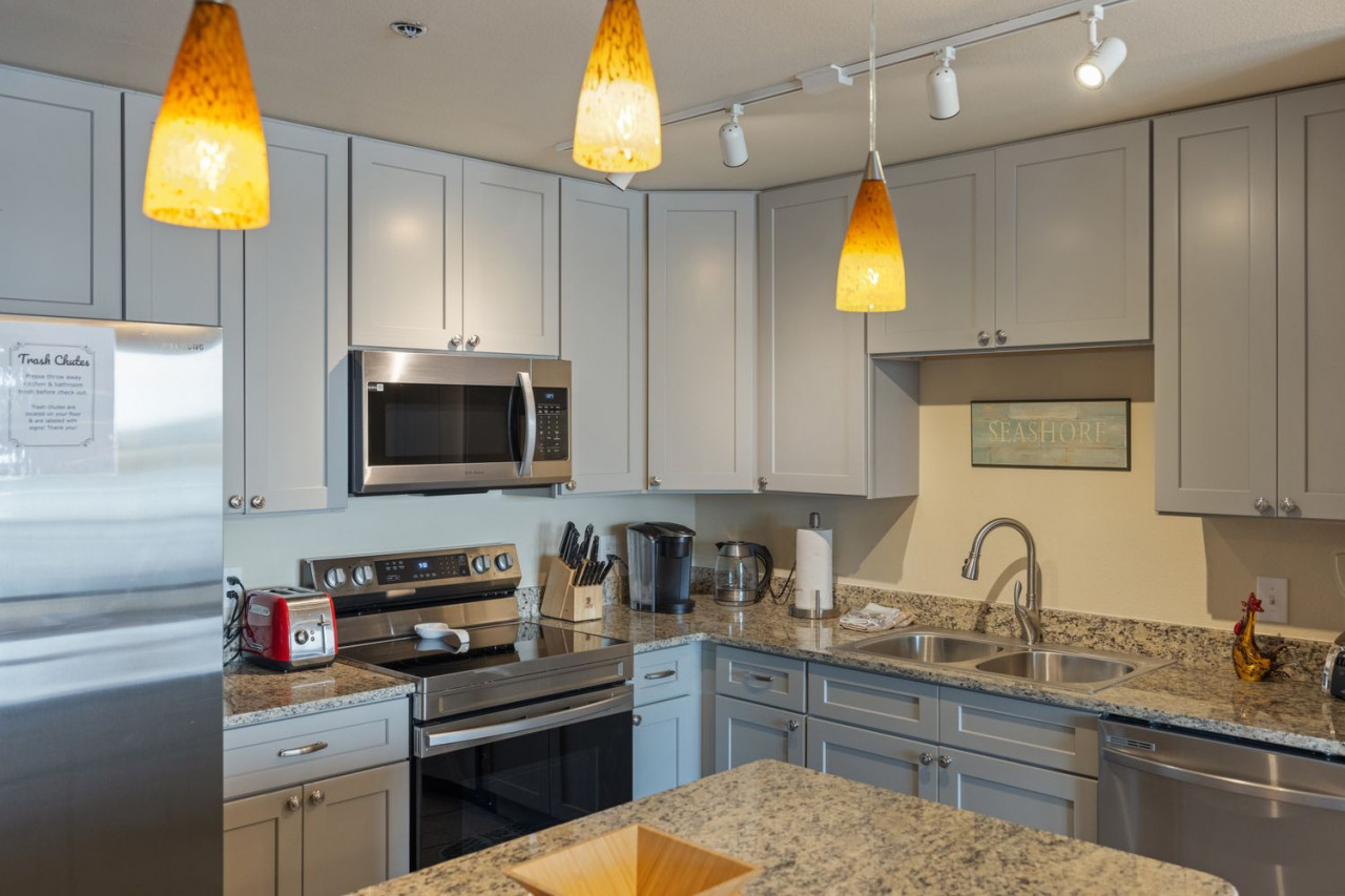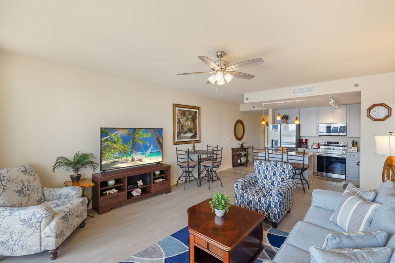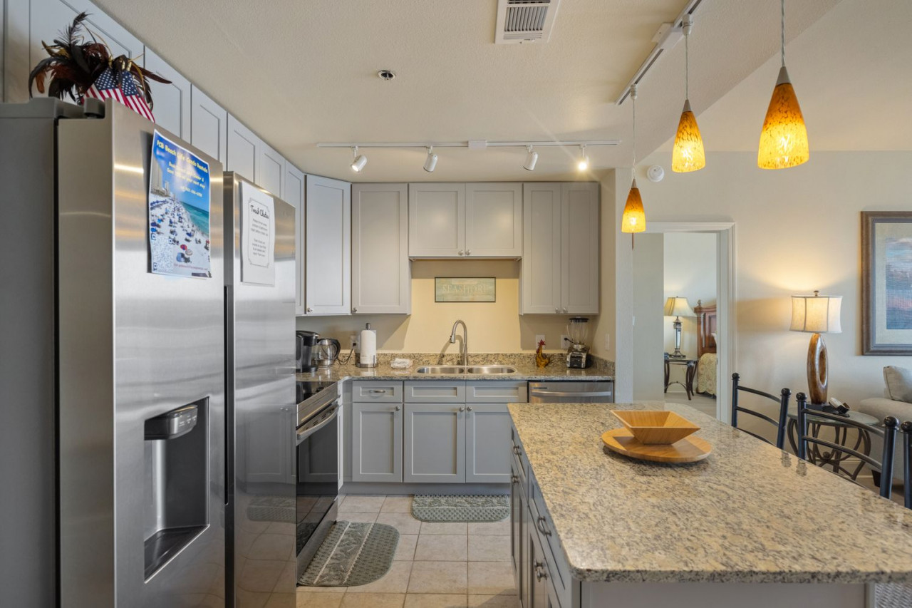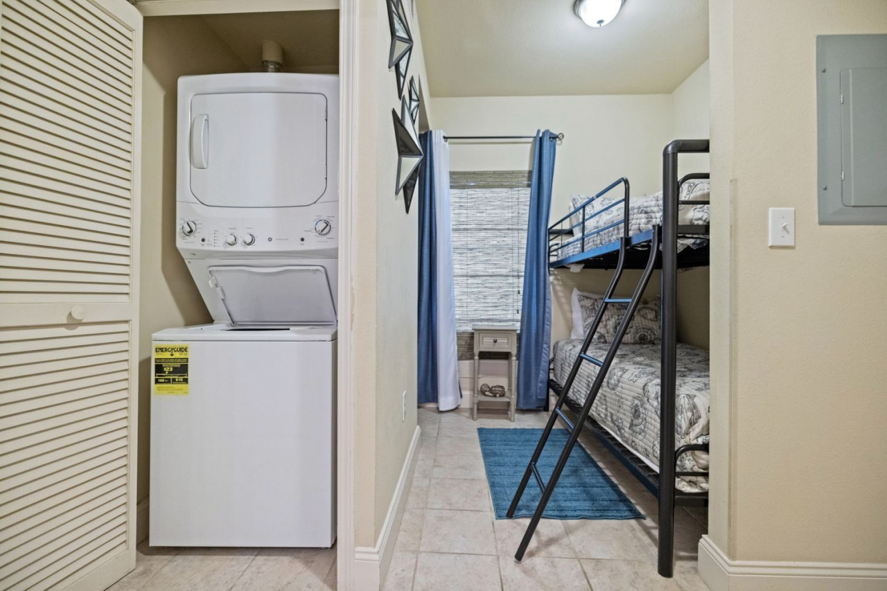 Bring the whole family & friends to this great LOW FLOOR condo with NO elevator waits lots of room for fun & relaxation. Condo has 2 bedrooms, plus a 3RD with bunk beds, is fully furnished, with a fully furnished kitchen, sleeper sofa, keyless entry, WIFI, and SMART TV’s. SLEEPS 8!