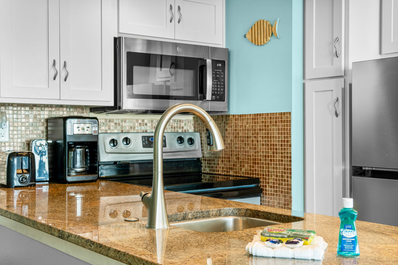 → INITIAL SUPPLIES UPON ARRIVAL – Dolce Vita Getaways PCB furnishes a few essential items for guests to utilize until they can get to the grocery store. Initial Supplies include: Dishwasher soap starter pack, small washing machine powder, and one paper towel. Each bathroom has travel size amenities including shampoo, conditioner, soap bar and body wash. One roll of toilet paper in each bathroom is provided.