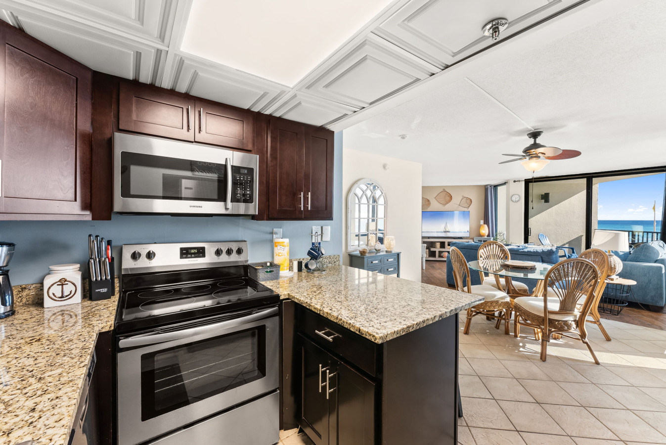Enjoy breathtaking Gulf views the moment you walk in. This bright, open-concept condo features coastal décor, comfortable furnishings, and seamless indoor-outdoor living.