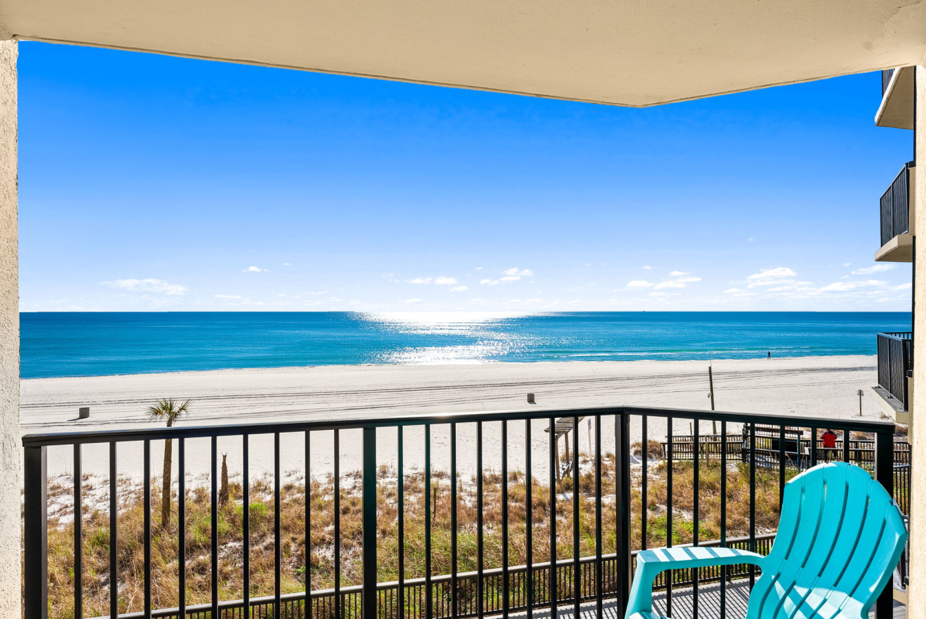 Private balcony overlooking sugar-white sands and emerald waters