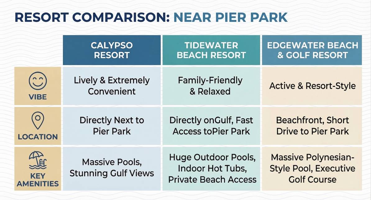 Staying close to Pier Park means you are never far from the best shopping, dining, and entertainment on Panama City Beach, but choosing the right resort makes all the difference. Whether you are planning a lively group trip, a relaxed family vacation, or an active getaway, here is how the three most popular options compare.
