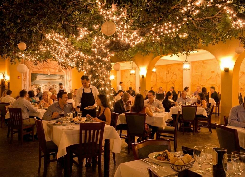 This is one of the most famous spots for a romantic dinner in town. The atmosphere is very special. They have a beautiful dining room with a large tree in the center covered in twinkling lights. It feels like you are dining outside in a magical garden. The food is wonderful, especially if you like steak or local seafood.